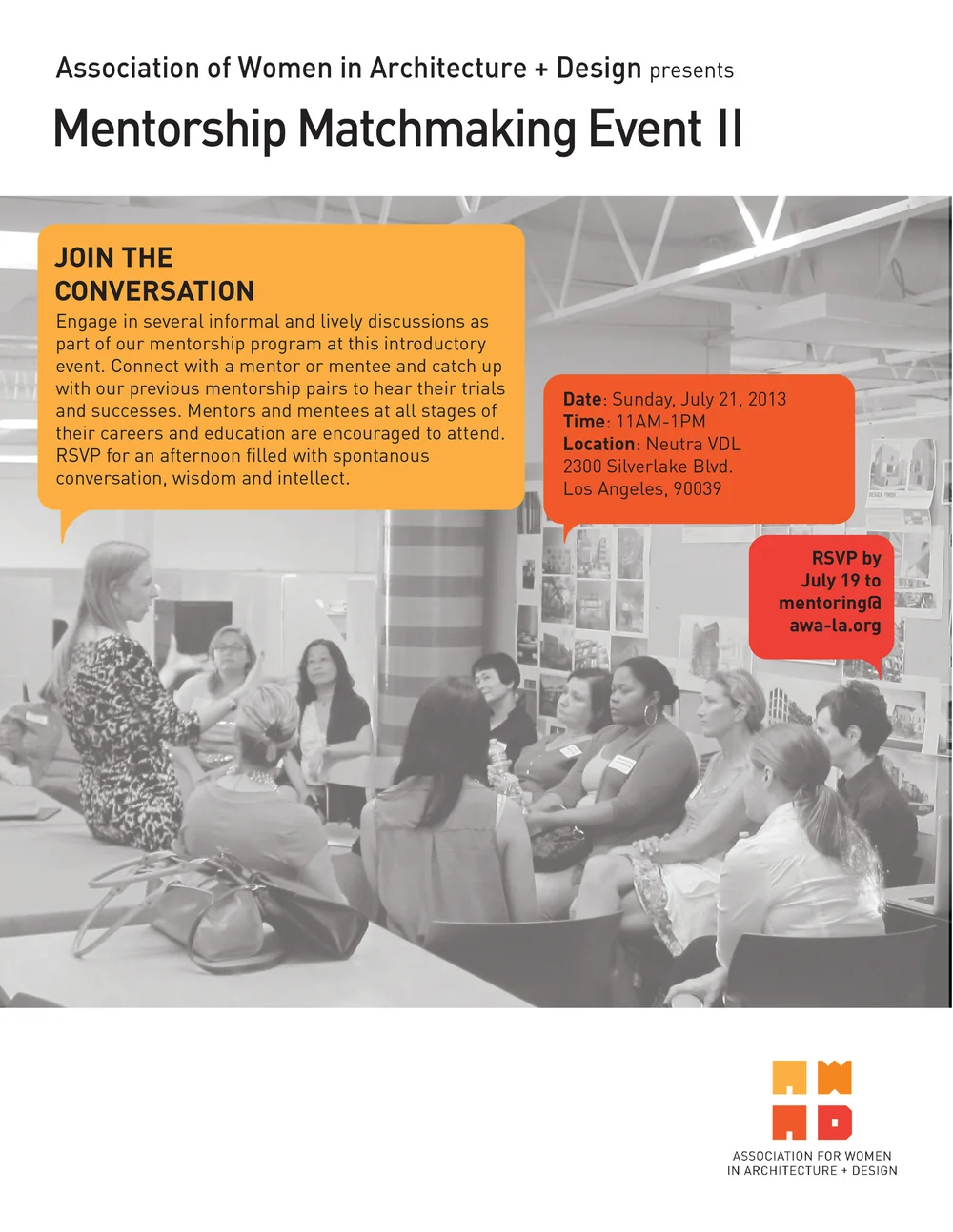 AWA+D鈥檚 mentorship program has been growing strong and is pleased to continue supporting local design professionals of all levels with a growing group of mentors and mentees. Held at Richard Neutra鈥檚 recently restored , this member and non-member event will offer those interested in both sides of the mentorship relationship an opportunity to have brief one-on-one conversations followed by intimate group discussions. Connect with a mentor or mentee at this informal and lively event by RSVP鈥檌ng to the Mentoring Committee by July 19th. Please indicate your design profession, experience level and whether you are seeking for a mentor, mentee or both.